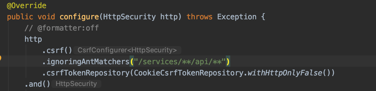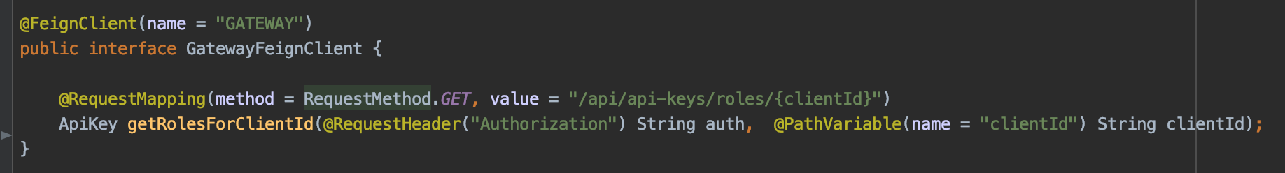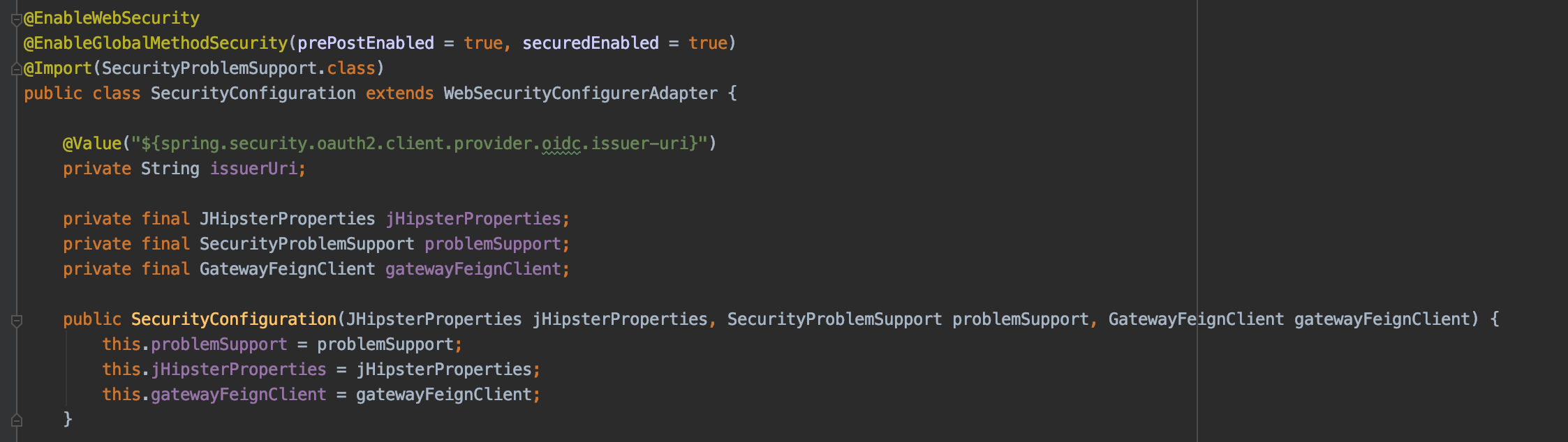 We now need to inject our GatewayFeignClient into our security configuration: