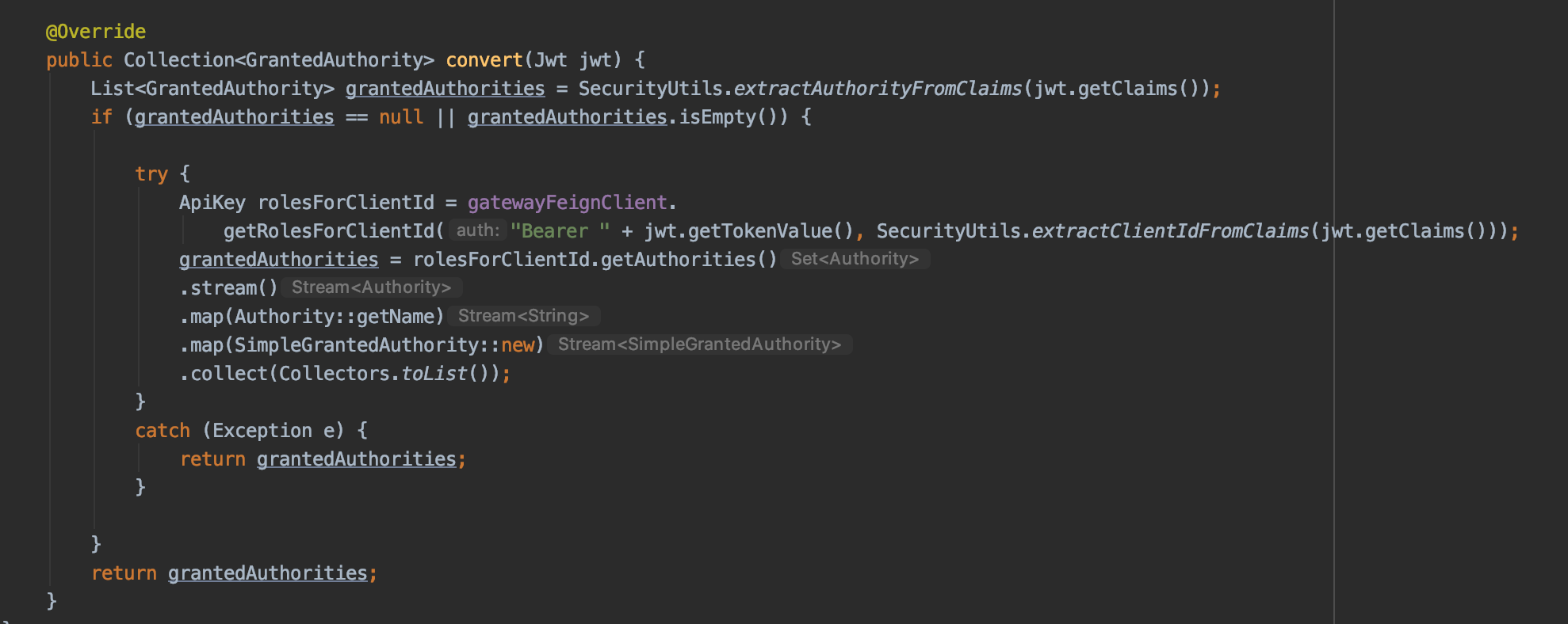 And we modify our JWTGrantedAuthenticationConverter to query the Gateway for roles: