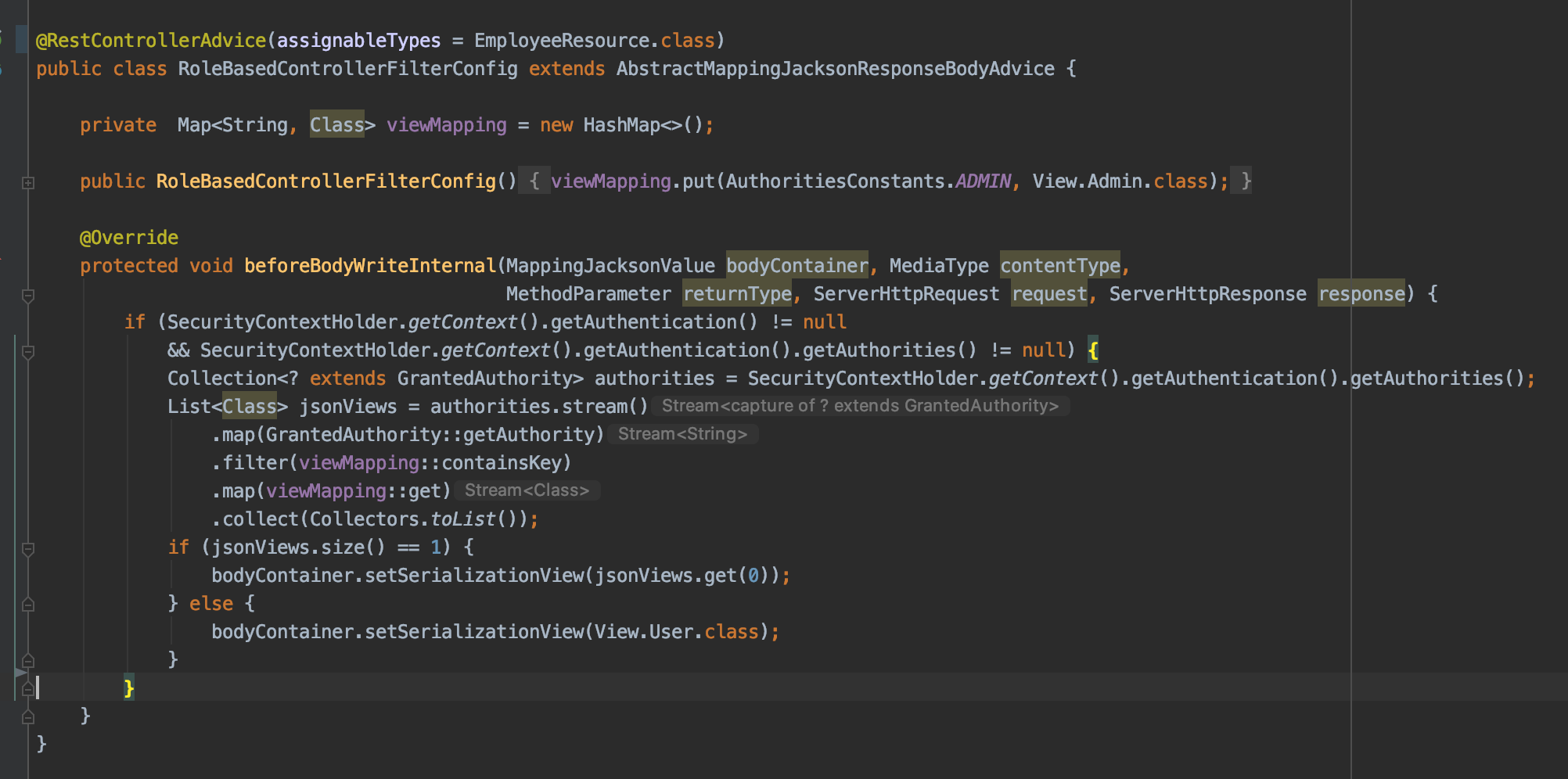 Finally a RestControllerAdvice to tie Authorities with Views and do the filtering automatically: