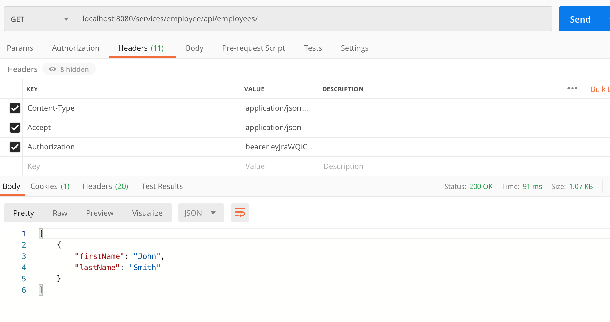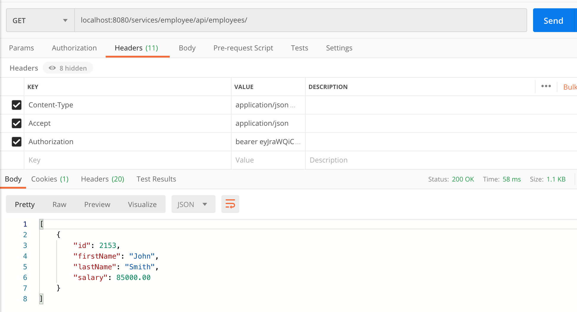 --header 'Authorization: bearer eyJr*****......' And get a response: